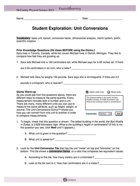 Download Student Exploration Unit Conversions Answer Key Reader